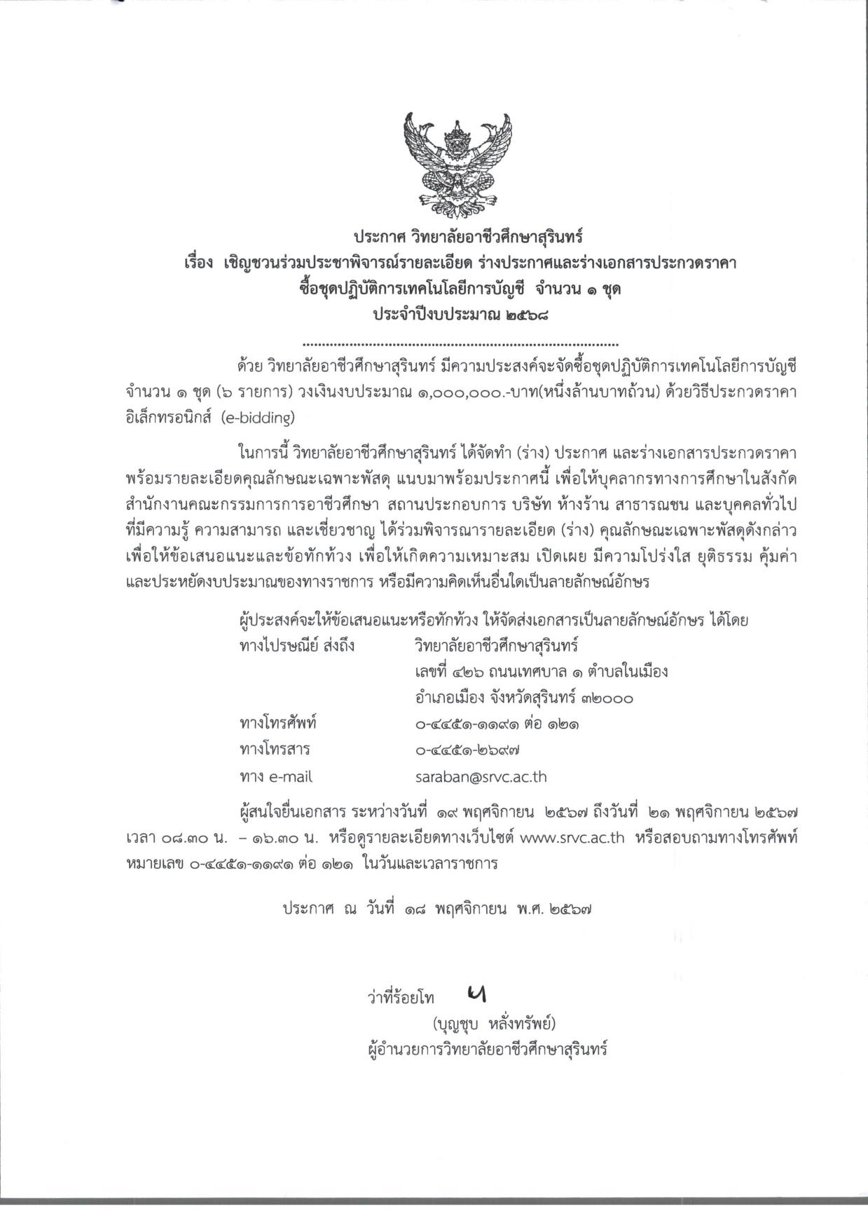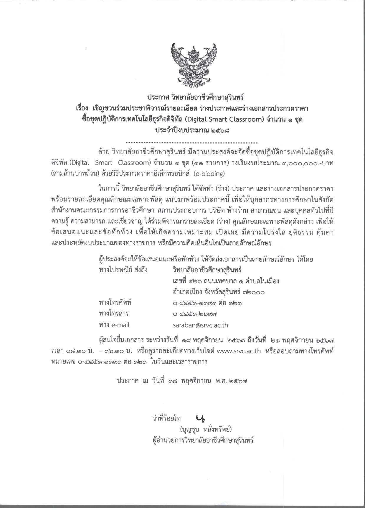 เชิญชวนร่วมประชาพิจารณ์รายละเอียด ร่างประกาศและร่างเอกสารประกวดราคาซื้อชุดปฏิบัติการเทคโนโลยีธุรกิจดิจิทัล Digital Smart Classroom download เอกสาร download เอกสาร รายละเอียดเพิ่มเติม