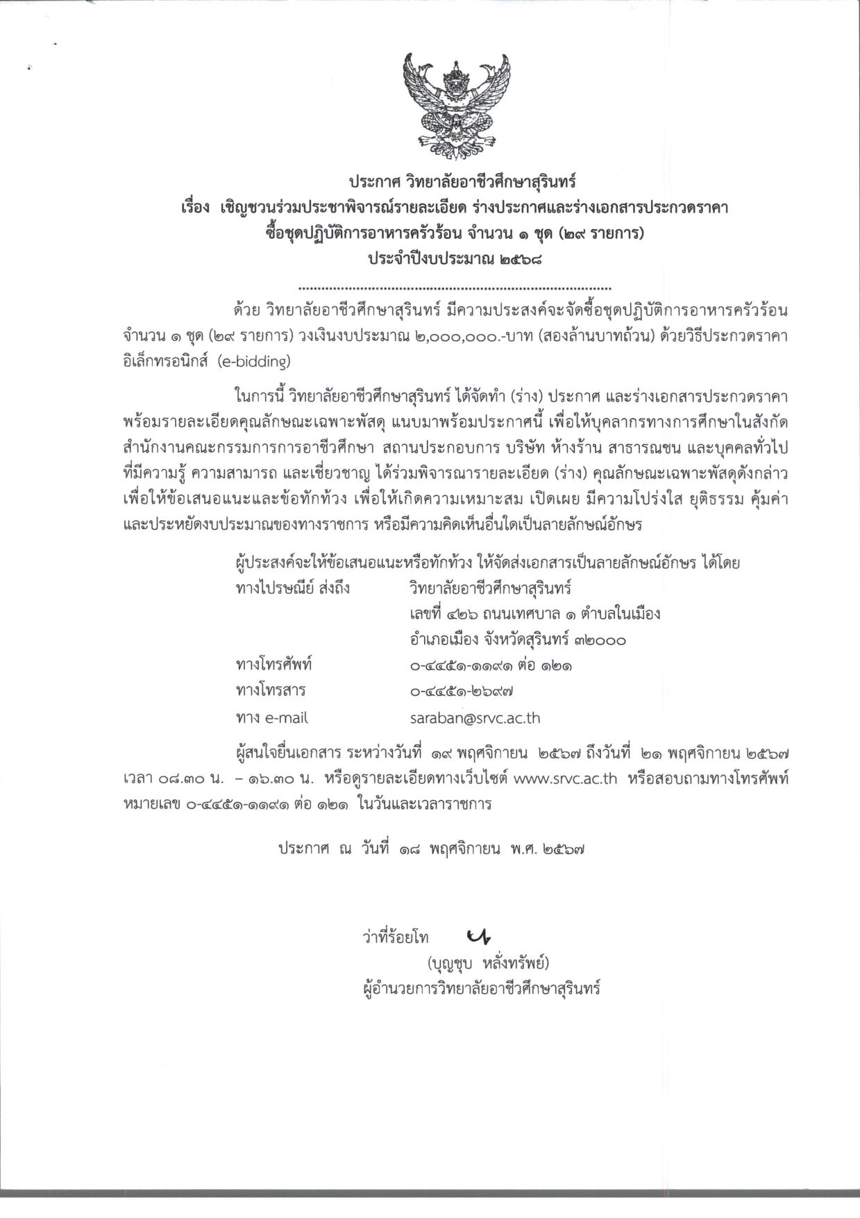 เชิญชวนร่วมประชาพิจารณ์รายละเอียด ร่างประกาศและร่างเอกสารประกวดราคาซื้อชุดปฎิบัติการอาหารครัวร้อน download เอกสาร download เอกสาร รายละเอียดเพิ่มเติม