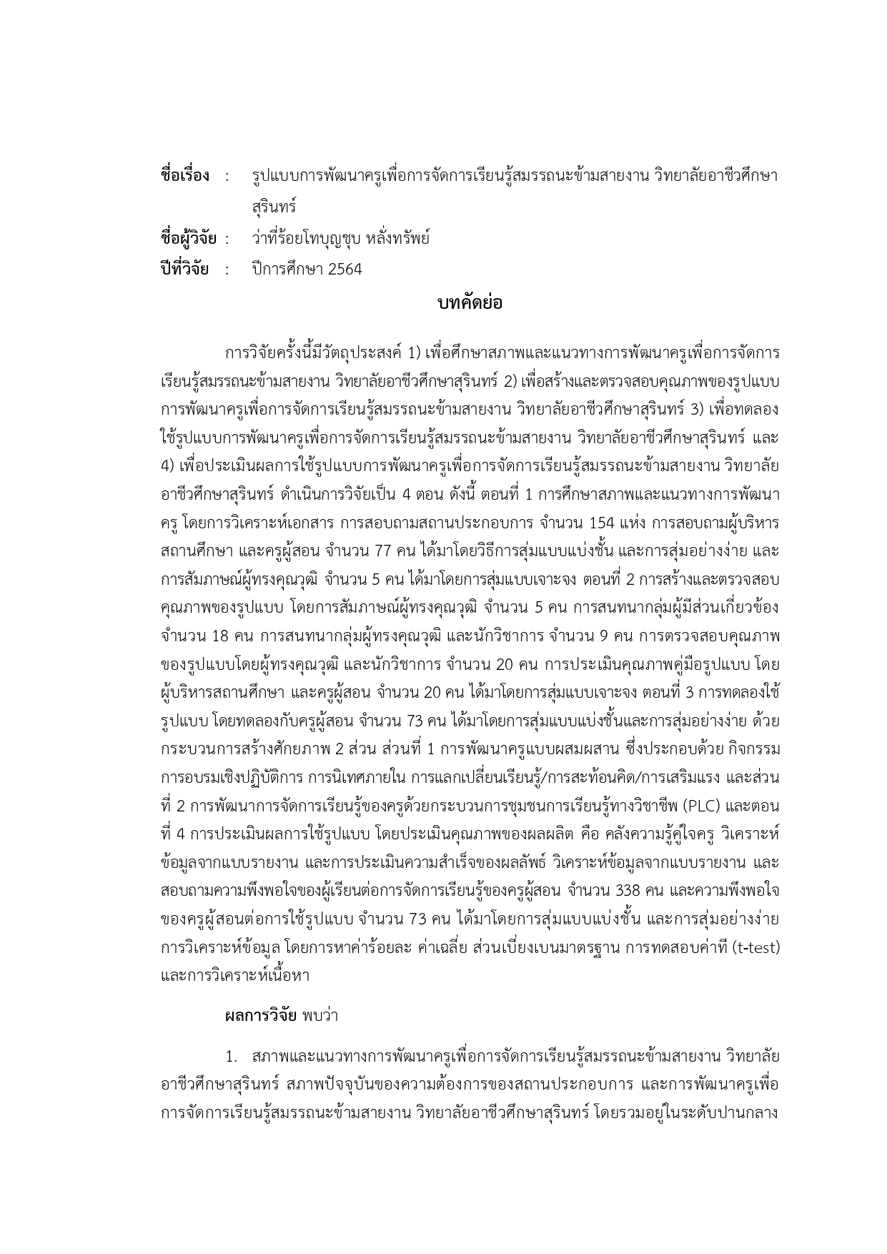 รูปแบบการพัฒนาครูเพื่อการจัดการเรียนรู้สมรรถนะข้ามสายงาน