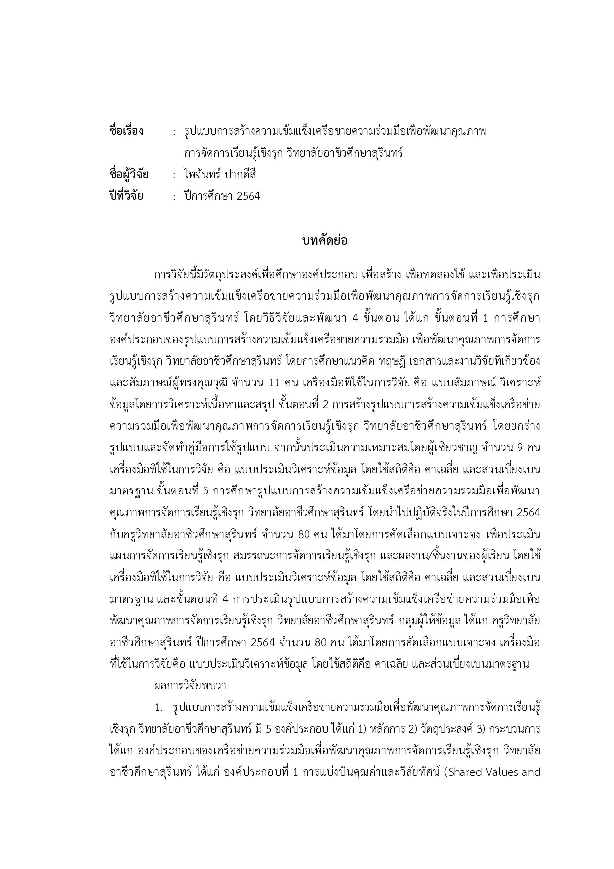 รูปแบบการสร้างความเข้มแข็งเครือข่ายความร่วมมือเพื่อพัฒนาคุณภาพ การจัดการเรียนรู้เชิงรุก