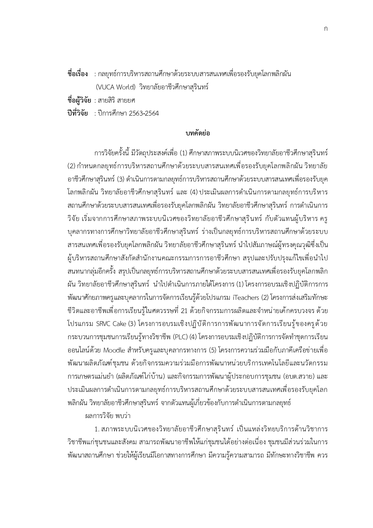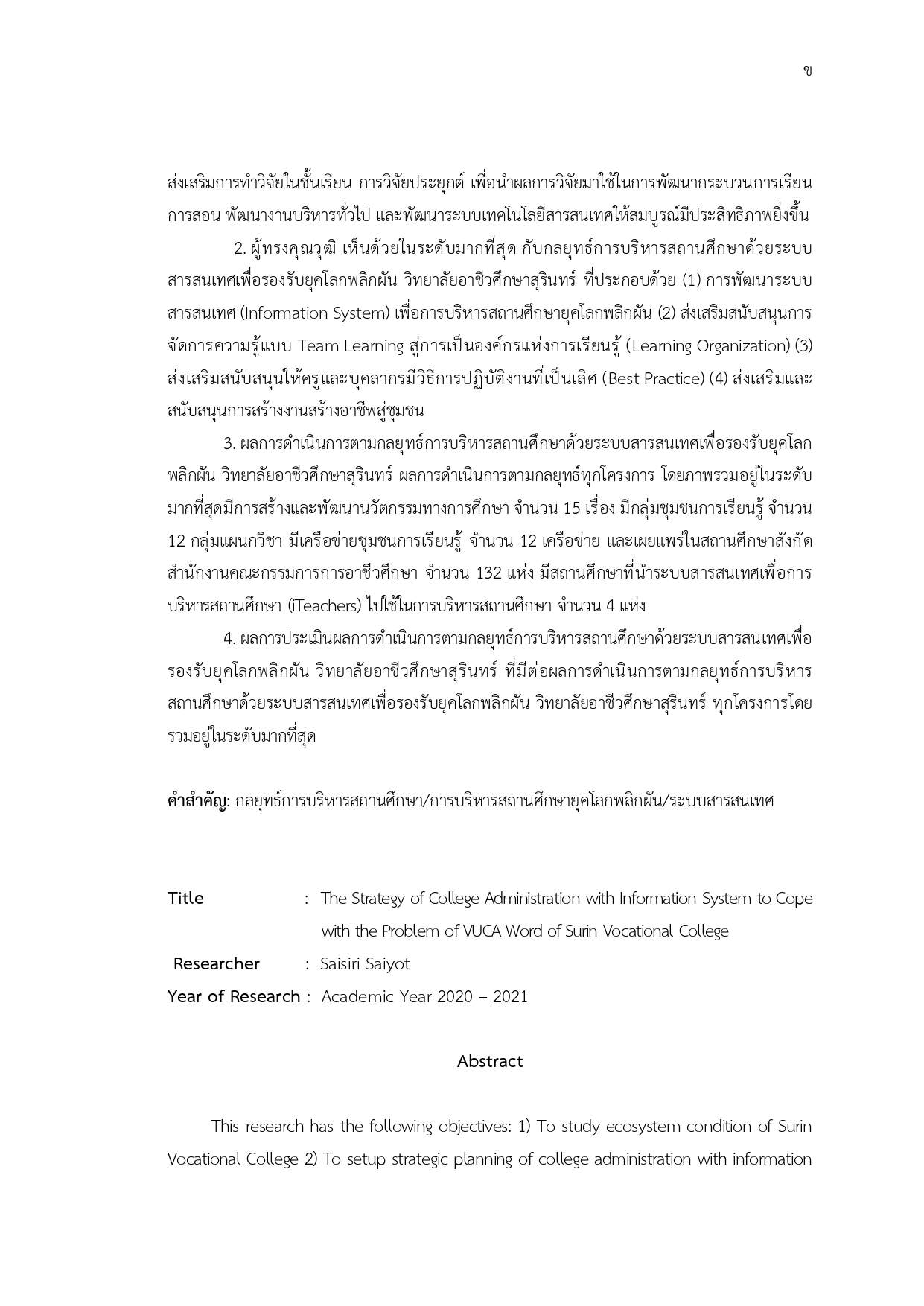 กลยุทธ์การบริหารสถานศึกษาด้วยระบบสารสนเทศ เพื่อรองรับยุคโลกพลิกผัน (VUCA World) User Rating: 2 / 5 Please Rate Vote 1 Vote 2 Vote 3 Vote 4 Vote 5 Super User เผยแพร่ผลงานผู้บริหาร 11 August 2022 Hits: 3263 Rating: Prev Next tweet